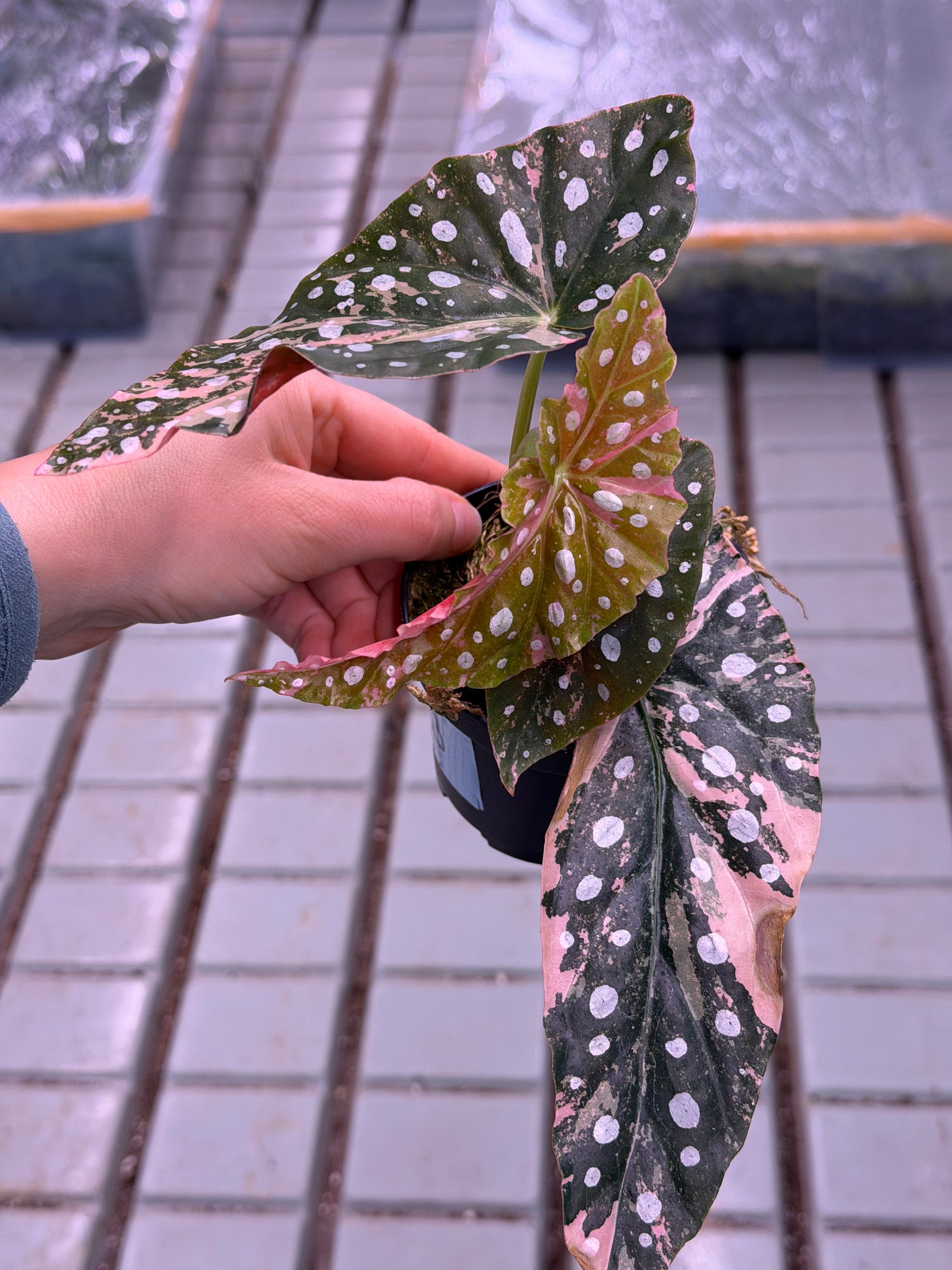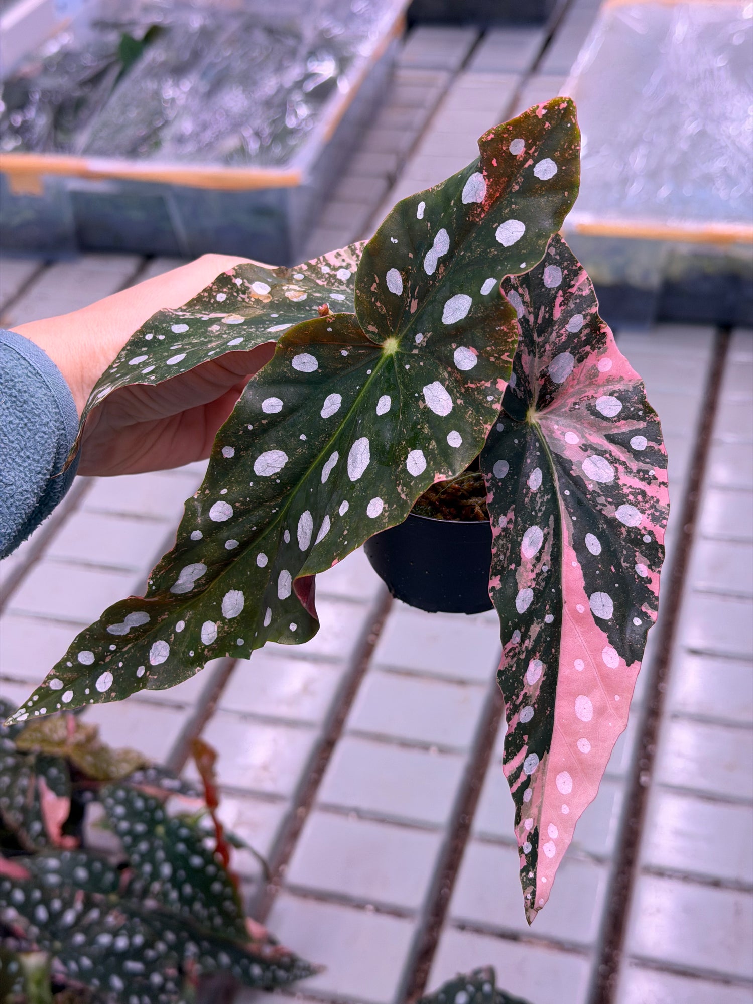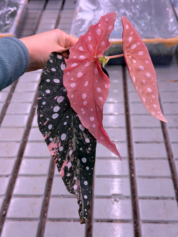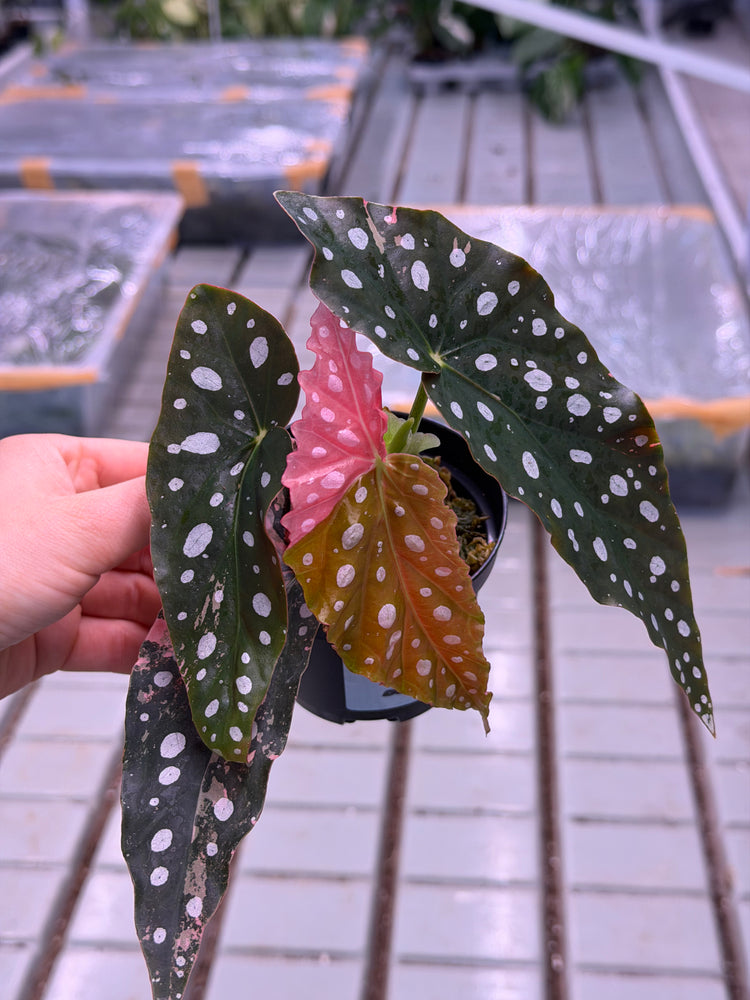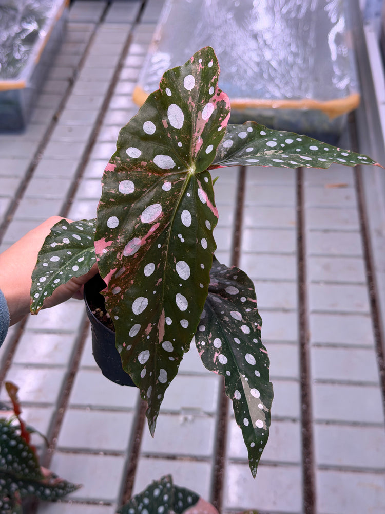 Begonia maculata Pink Variegata is one of the most extraordinary and rarest begonia varieties. Known for its iconic white spots and deep green leaf surface, this variegata form also delights with delicate pink to vibrant pink color variations , making each leaf a unique work of art.